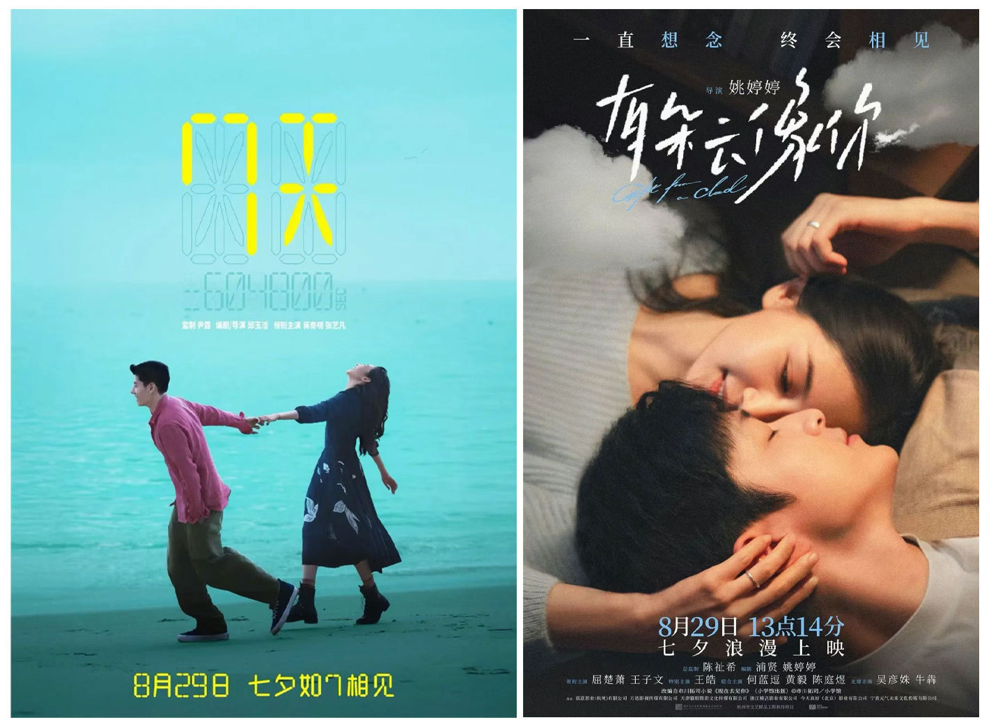 在即将到来的七夕(8月29日),爱情片《7天》《有朵云像你》也即将与观众见面。