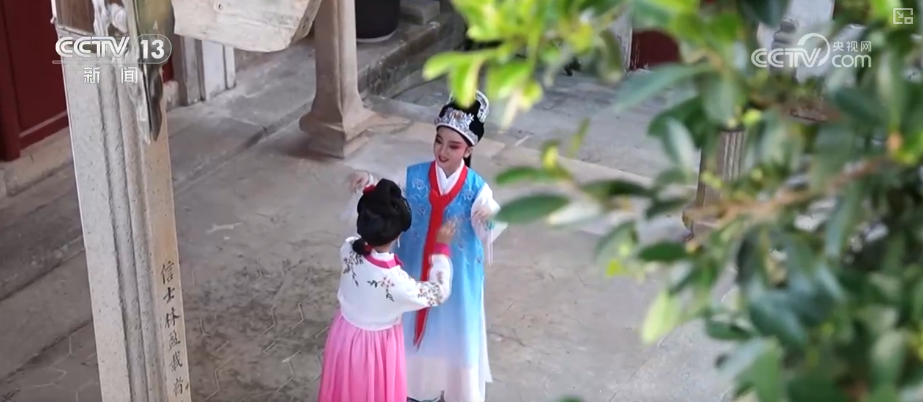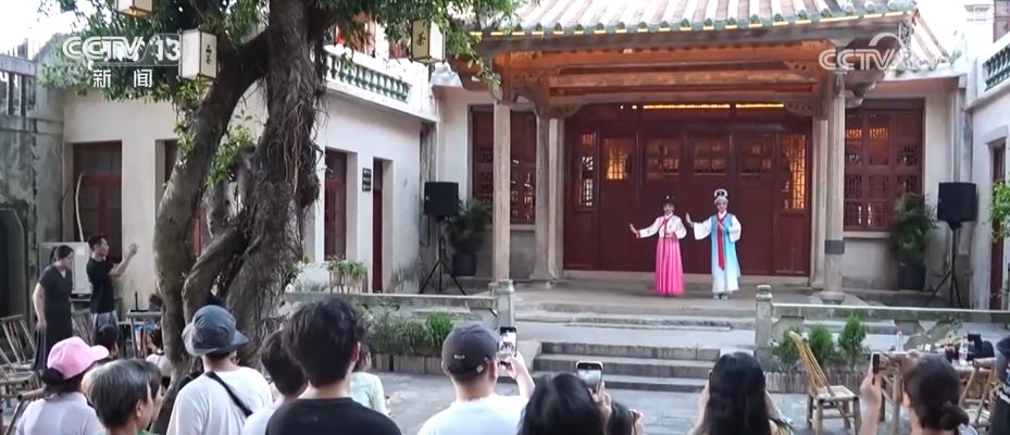 正在上演的是国家级非物质文化遗产,潮剧《春香传》中的选段,闽南语唱词婉转悠扬,吸引了不少游客驻足。潮剧团的负责人介绍,为了能让非遗可听、可看、可感,他们还会定期走进南门湾的街巷,通过南门湾的文化潮流地标,把潮剧传播出去。