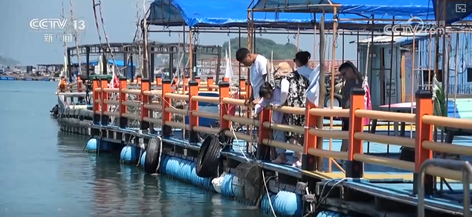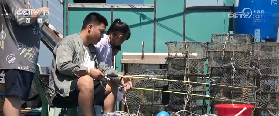 每天上午,旅游排艇满载游客驶向近海养殖区,“海洋牧场”体验项目正式开启。渔民们化身讲解员,给小朋友科普巴浪鱼、石斑鱼的生长习性。游客们还可以亲手参与海钓、拉蟹笼,还可以进行海滩烧烤、体验海景居室,享受滨海浴场。