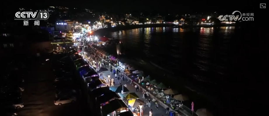夜幕降临,开渔后的南门湾灯火通明。一艘艘载满游客的渔船从渔人码头出发,驶向近海渔排,这是当地特色的夜捕小管体验项目。