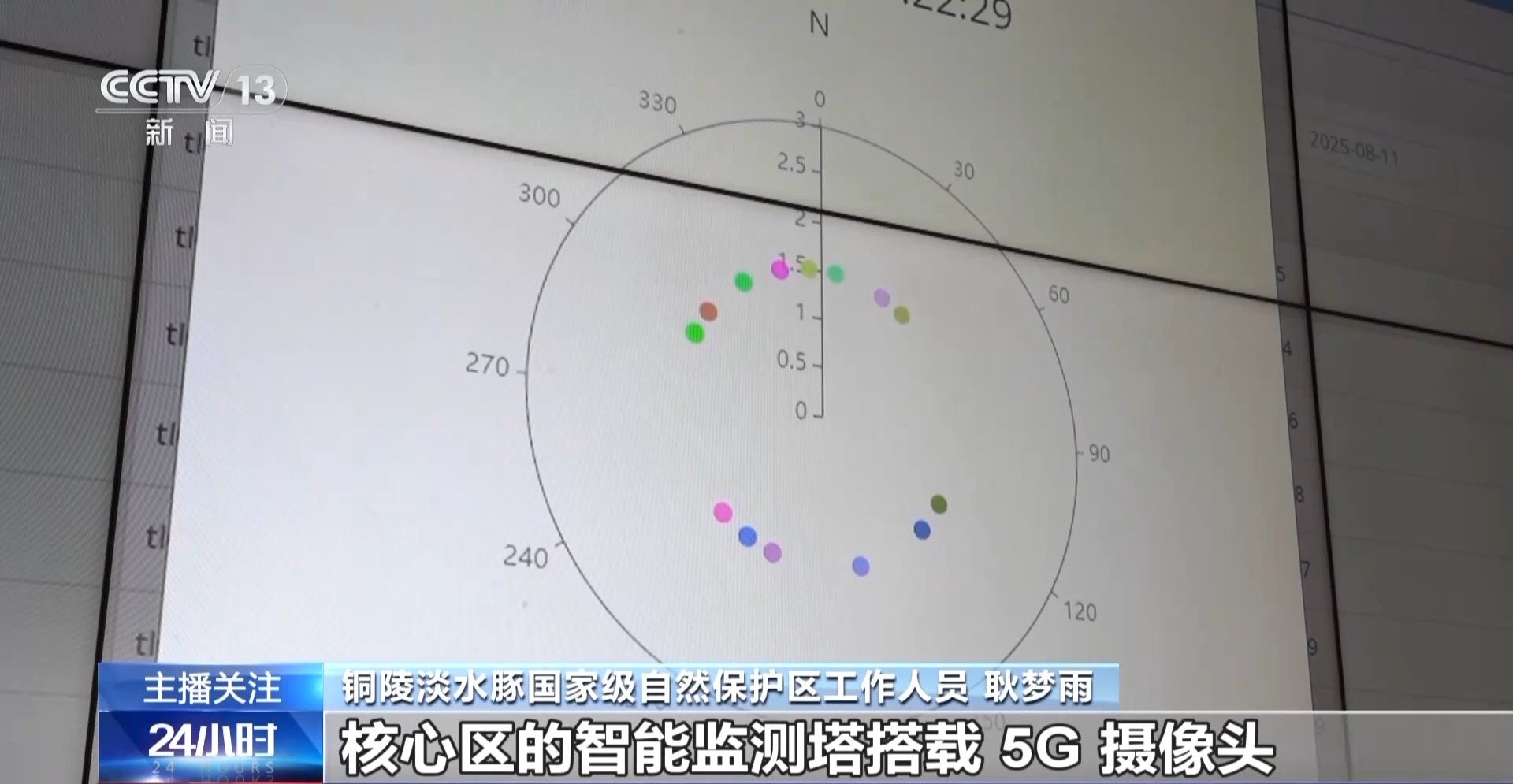 铜陵淡水豚国家级自然保护区工作人员 耿梦雨:19个高空探头加水下声呐组成“数字防线”,实时捕捉江豚声音信号和行动轨迹。核心区的智能监测塔搭载5G摄像头,识别非法捕捞准确率高达98%。