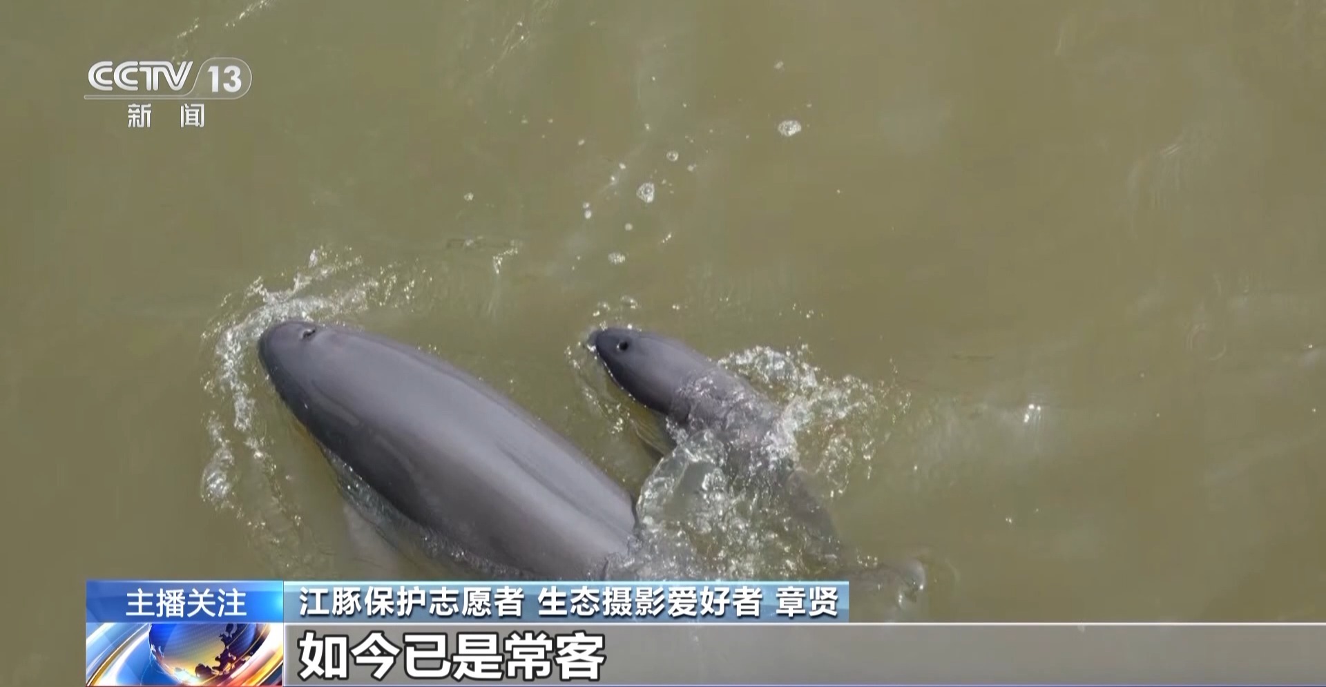 江豚保护志愿者 生态摄影爱好者 章贤:这是一个家族,里面有母子豚,代表长江江豚自然繁衍得很好,我追寻江豚已经三十多年了。长江水质一天天变好,从前难觅踪影的“微笑天使”,如今已是常客。