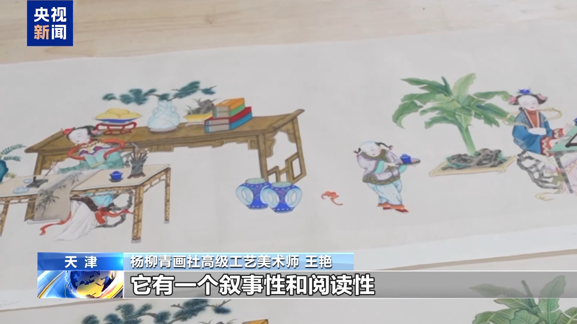 杨柳青画社高级工艺美术师 王艳:这幅画做的是手卷的形式,其实也是我们中国的传统美学。它就像电影一帧一帧慢慢地展开,有叙事性和阅读性。