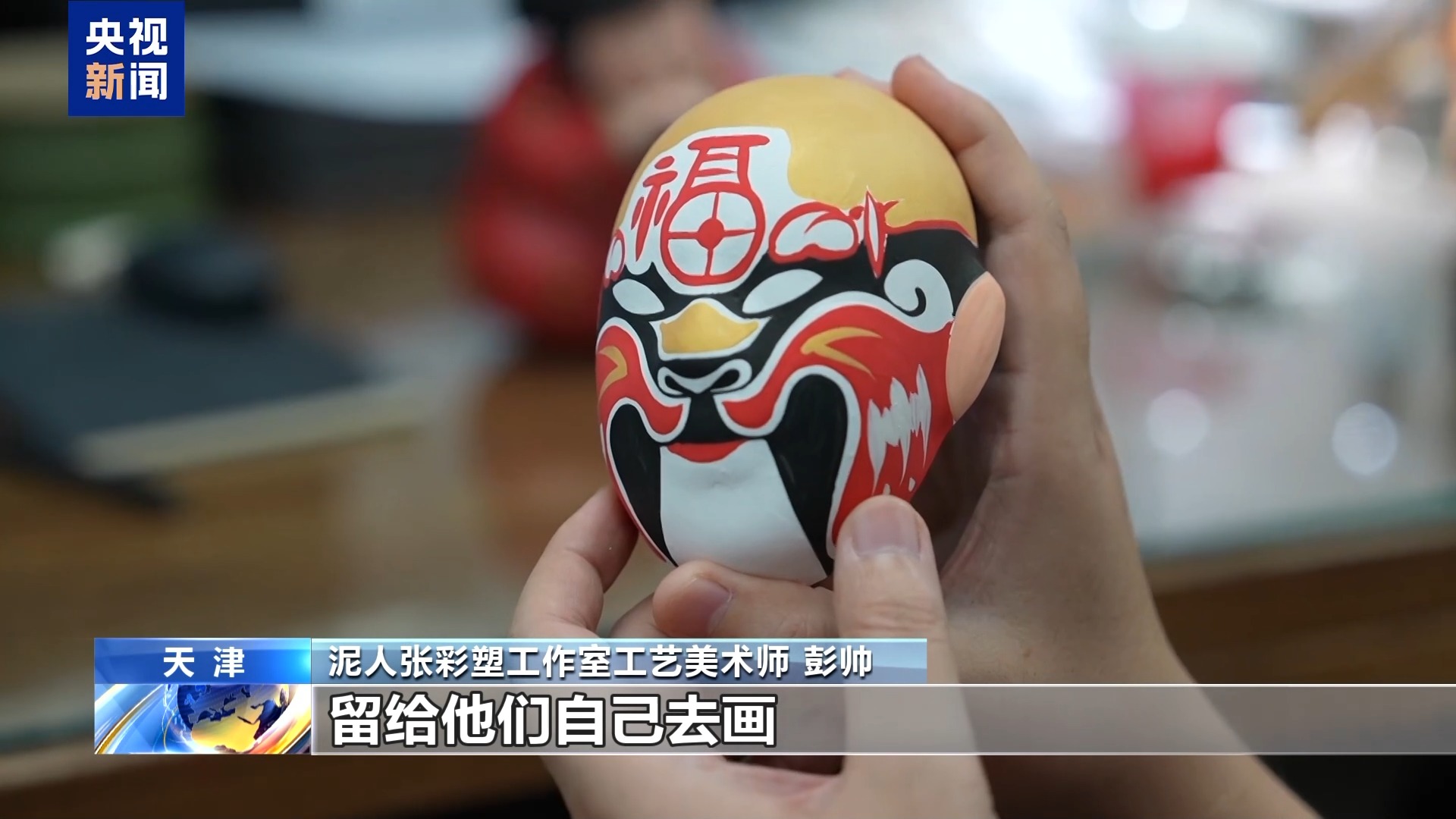泥人张彩塑工作室工艺美术师 彭帅:中国人认为眼睛是比较重要的地方,画在不同的位置会呈现出不同的效果。所以我们就把最重要的位置留给他们自己去画,去体验,画完之后可以带走,当作一个小的伴手礼
