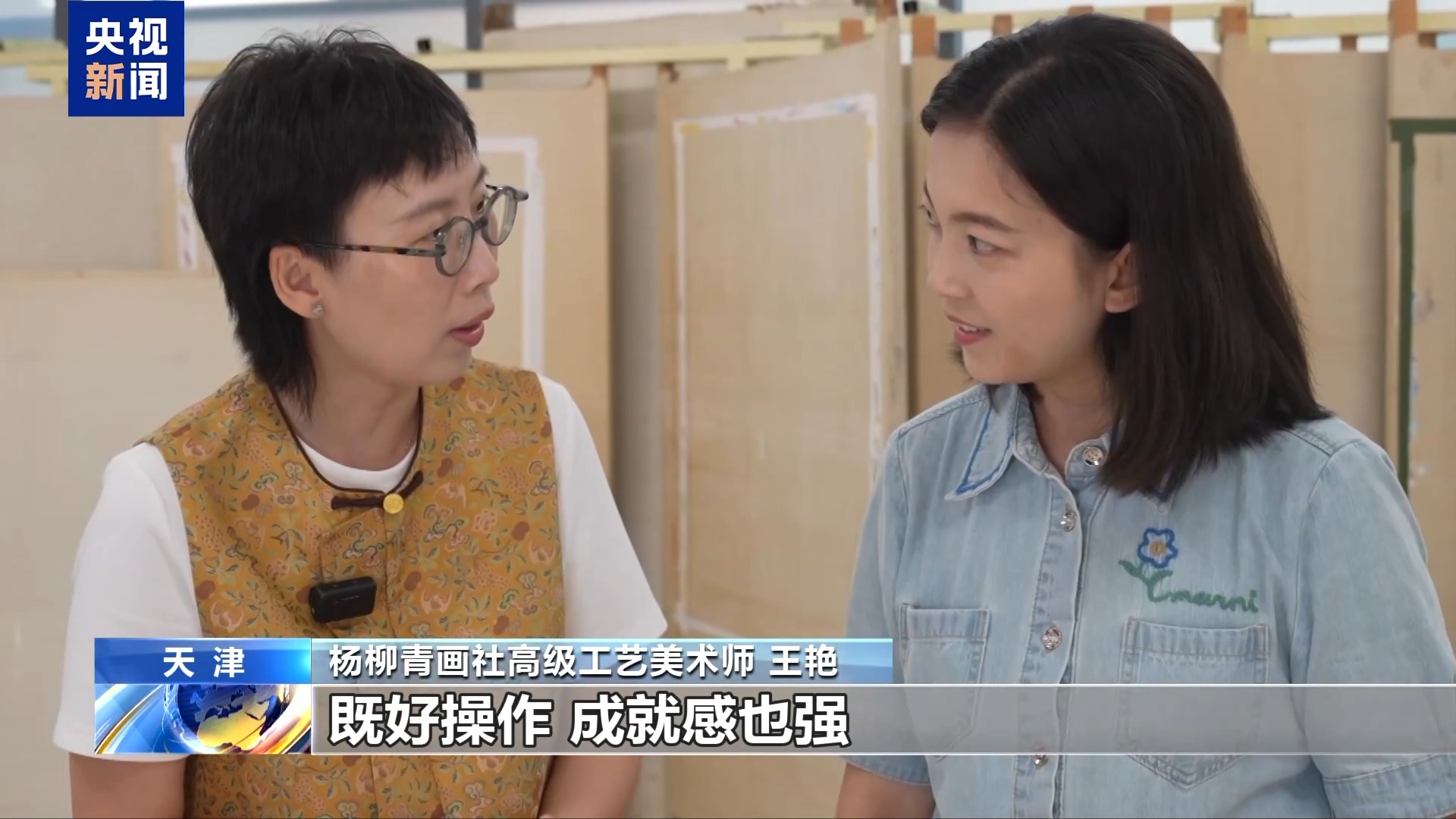 杨柳青画社高级工艺美术师 王艳:艺术的语言是相通的,我们选了一些画面,做了去色处理,用灯芯草点染,就可以出现树木、树叶这种饱满的场景,既好操作,成就感也强。