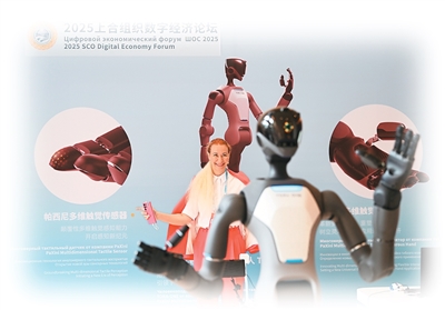 7月11日,嘉宾在2025上合组织数字经济论坛上体验操控人形机器人。新华社记者 李 然摄