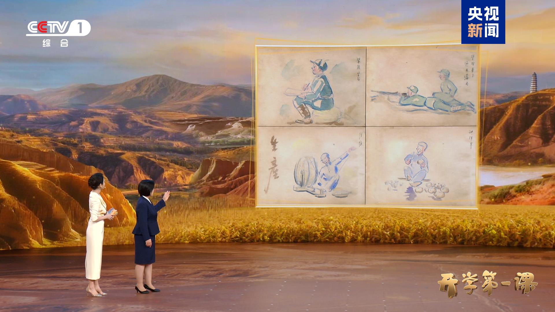 烽火连天的岁月里,令青年们心向往之的延安,留下了哪些动人的青春故事?在《开学第一课》现场,延安革命纪念馆馆长刘妮将为大家首次披露华侨青年王唯真手绘的抗战画本原件,再现延安青年的抗战生活。一位特殊的嘉宾——103岁的《黄河大合唱》首批演唱者孟于在节目中讲述了自己的延安岁月。来自全国各地的中小学生合唱团将与这位老艺术家进行一场跨越时空的同台演出,让《黄河大合唱》的激昂旋律在新时代继续奏响。