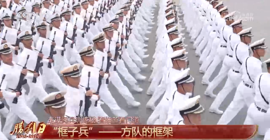 框子兵,就像方队四周的框架,可以控制队伍行进中的稳定性。训练中,通常会将方队四个边纳入“框子兵”。