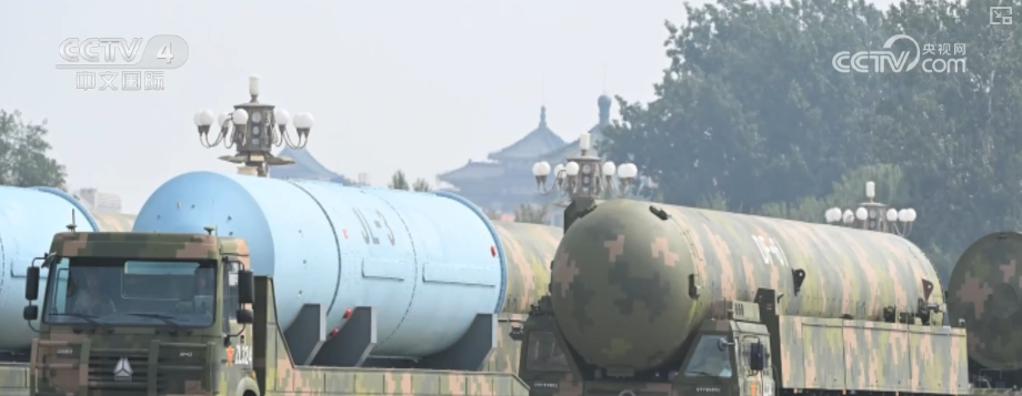 阅兵式上,多型先进武器系统罕见亮相,彰显解放军日益增强的远程投射与战略威慑能力。阅兵展示了“三位一体”核战略力量,包括“惊雷-1”空基远程导弹、“巨浪-3”潜射洲际导弹以及陆基洲际导弹“东风-61”和“东风-31BJ”。“东风-5C”液体洲际战略核导弹也备受关注。高超声速导弹鹰击-21、东风-17、东风-26D“组团”登场,长剑-20A、长剑-1000和鹰击-18C等巡航导弹也集体亮相。这些导弹具备了“全天候全方位作战能力”。
