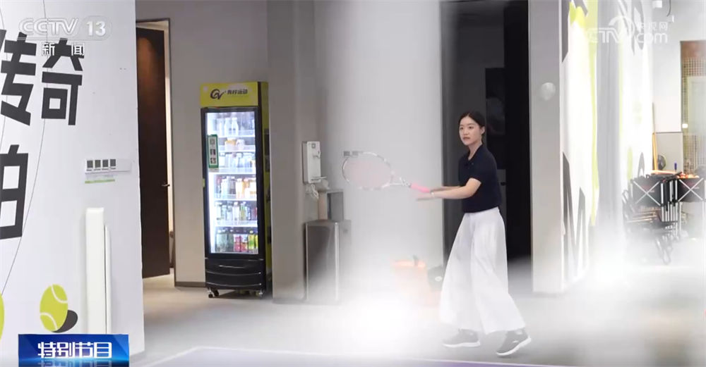 记者刚刚体验了木艺小手工,感觉整个人都安静下来了。这里不仅有“静”,而且有“动”,听说前面有一家网球馆将AI技术运用到了运动中,一起去看看。