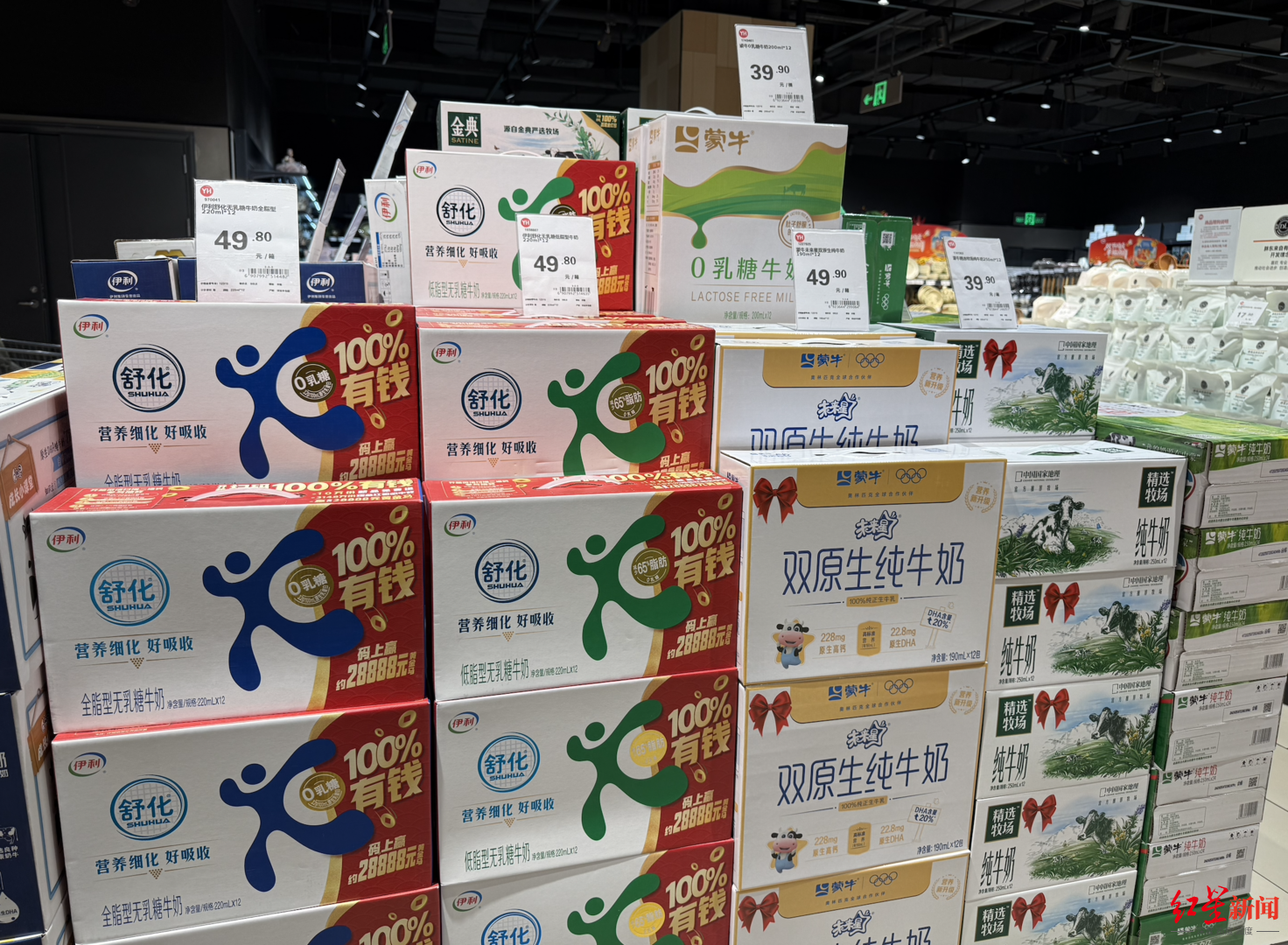 今日,红星资本局走访了四川省成都市多家永辉超市(601933.SH)、红旗连锁(002697.SZ)等商超,查看了目前超市里售卖的大部分常温纯牛奶,也就是新规定此次明确的灭菌乳。记者查看的产品配料表均合规,仅含有生牛乳,不含复原乳等原料,包括蒙牛乳业(02319.HK)、伊利股份(600887.SH)、菊乐股份(874569.OC)旗下的纯牛奶产品。