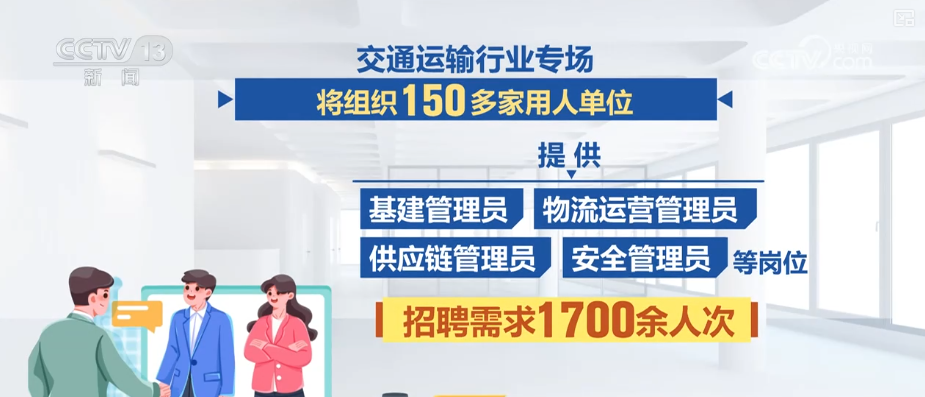交通运输行业专场将组织150多家用人单位,提供基建管理员、物流运营管理员、供应链管理员、安全管理员等岗位,招聘需求1700余人次。