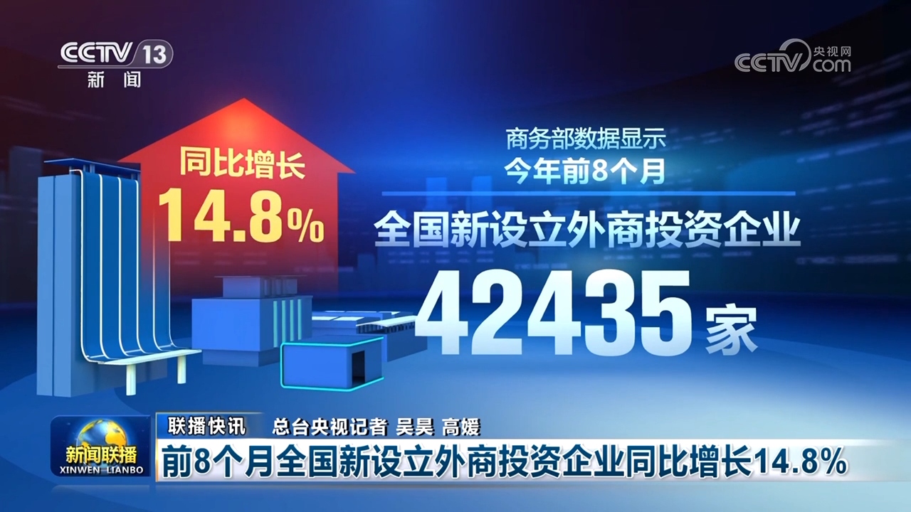 央视网消息:9月21日《新闻联播》报道,我国消费市场平稳增长、海洋产业持续做强做优、前8个月全国新设立外商投资企业同比增长14.8%……多领域燃动活力引擎,中国经济稳中提质。