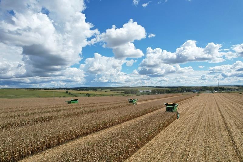 2025年9月10日,在北大荒集团黑龙江建设农场有限公司第三管理区,大马力机车在进行玉米抢收作业。