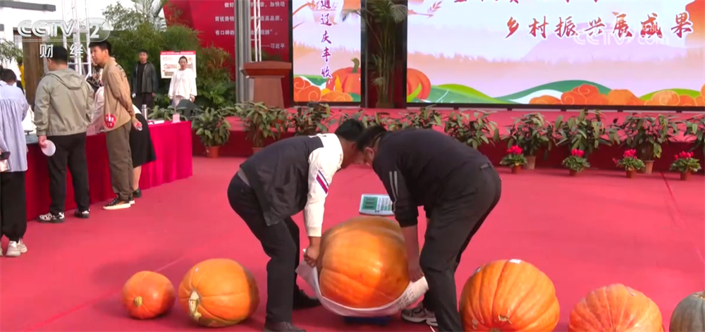 走进“赛丰收”活动的现场,工作人员正在认真地测量西瓜、南瓜、螃蟹的重量。参加比赛的农产品有蔬菜瓜果,也有谷物和水产。既有重量大小的“比拼”,也有口感香味的“较量”。