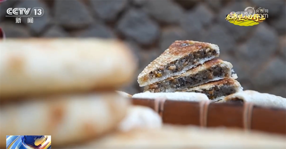 不仅要晒秋,按照当地的传统,秋分节气前后还要食秋,吃的就是当地的一些传统特色美食。这是传统的客家线面,这道美食的特点就是细如丝线,因此“拉线”是制作线面最核心的一步。老乡们要将线面缠绕在一根固定的竹竿上,再握住另一根竹竿,向外拉抖面条,直到把小拇指粗的面条全部拉到丝线般细为止。接着,还要把线面挂在面架上晾晒,千丝万缕的线面在阳光下细若银丝,远远看过去,仿佛一层层白纱。因为客家话的“面”与“命”的发音相似,因此生日或者有喜事的时候,客家人都要吃线面,并且煮线面都不剪断,寓意“长命百岁”。