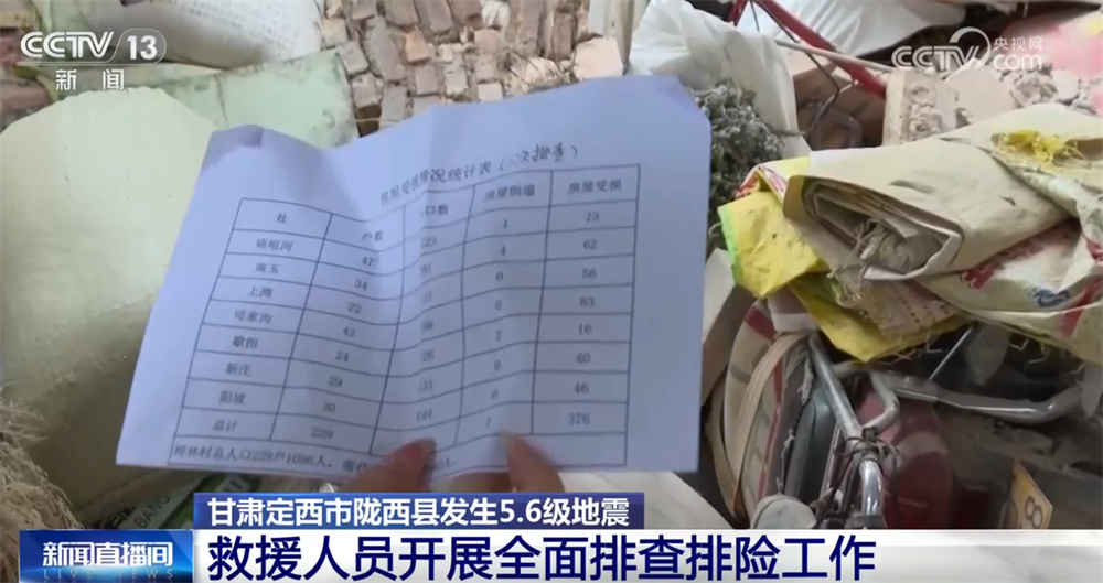 甘肃定西市陇西县发生5.6级地震:震中位于陇西县文峰镇 排查搜救正在进行