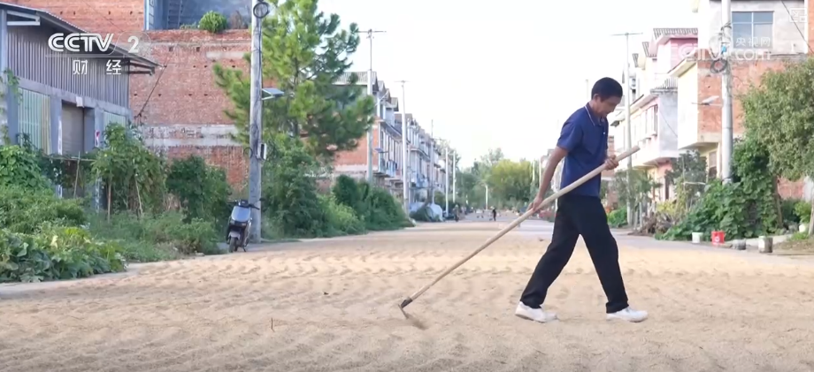 房前屋后、晒谷场上,新收获的稻谷均匀铺开,宛如一块块“金色地毯”,又是一个丰收年。粮食收购点外,满载稻谷的车辆排起长队,过磅、卸粮、当场结算,农户们“粮出手、钱到账”。