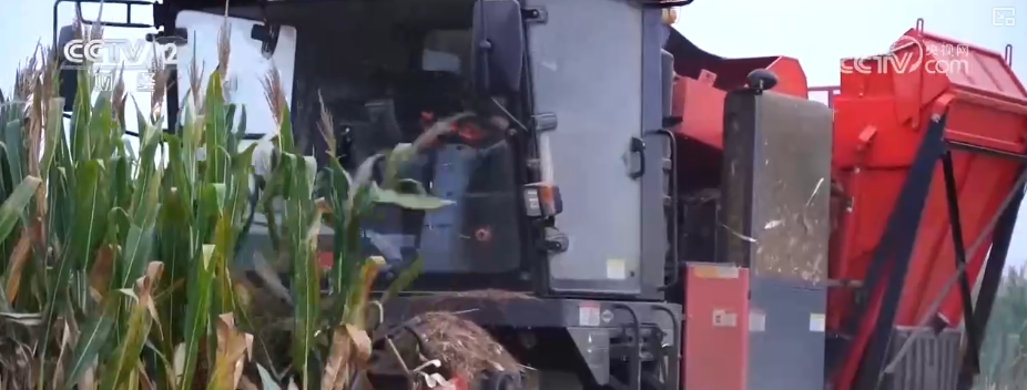 山东6000多万亩秋粮长势良好,陆续成熟。武城县石官屯村这个家庭农场里,新型四行玉米联合收割机,一次性完成摘穗、输送、秸秆粉碎还田等全流程作业。