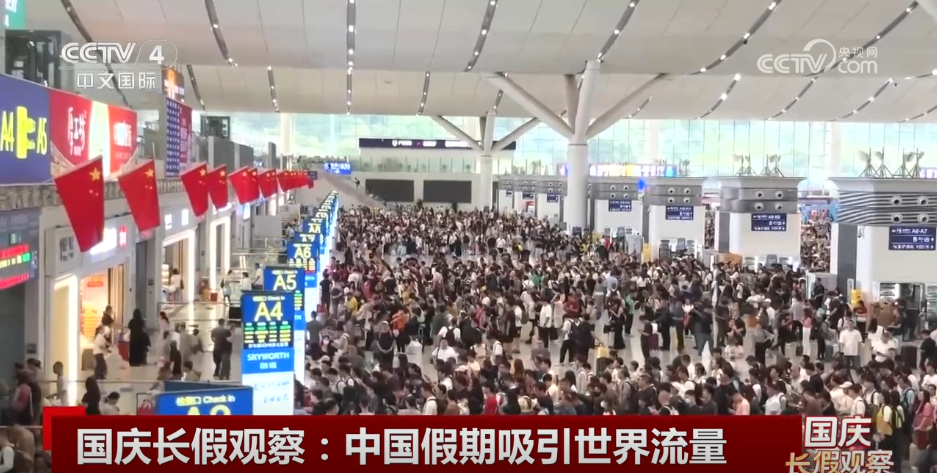 央视网消息:国庆中秋8天假期,预计23.6亿人次跨区域流动,动态绘就中国大地上生动的假期图景。节前高铁新线开通、多条高速公路贯通、航班航线加密等持续升级提速,假期出行新选择、新选项再扩容;上海双邮轮同日靠泊,邮轮游持续火爆,中国游吸引力显著提升;中国假期吸引世界流量,彰显“假日中国”动能澎湃。《国庆长假观察》10月1日播出第一集:《中国假期吸引世界流量》。