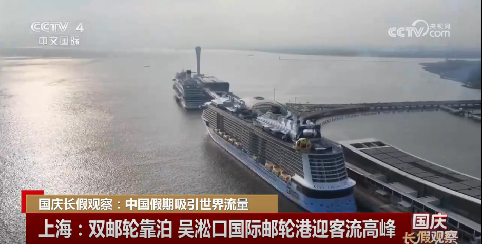 轮游成为假期热门选择。上海的吴淞口国际邮轮港,“爱达魔都号”和“海洋光谱号”两艘大型邮轮同步靠泊。