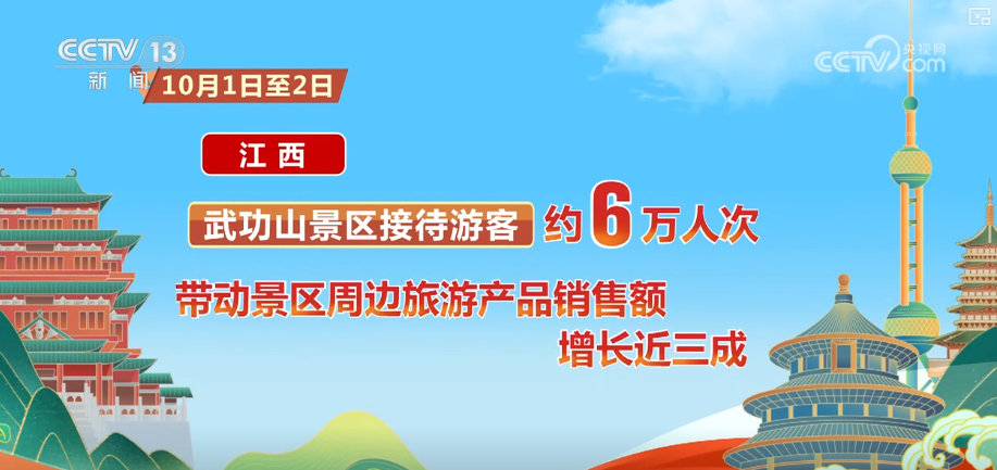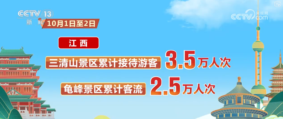 江西龟峰景区累计客流达2.5万人次。目前,景区推出政策,全国游客现场完整背诵《可爱的中国》节选,可以免门票入园,预计假期总客流量将突破10万人次。江西萍乡武功山景区接待游客约6万人次,带动景区周边旅游产品销售额增长近三成。