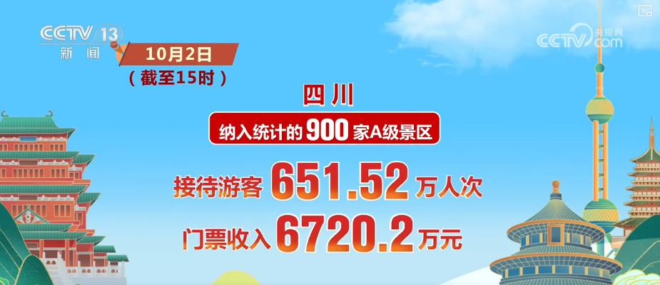 记者从四川省文化和旅游厅了解到,截至10月2日15时,四川全省纳入统计的900家A级景区接待游客651.52万人次,门票收入6720.2万元。