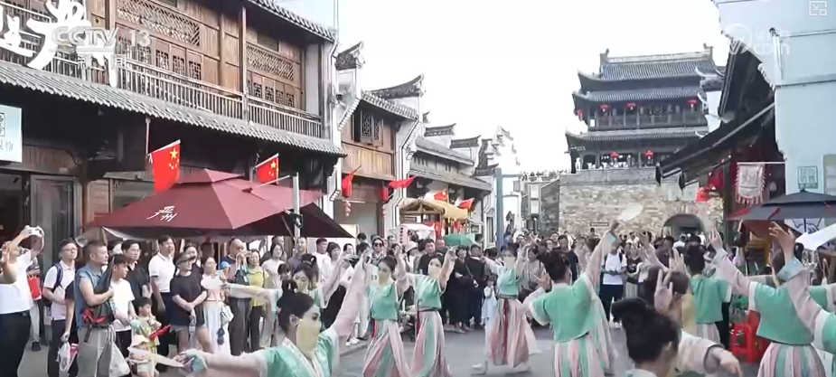 在有着1800年历史的浙江建德梅城古镇,依托当地传统文化,精心打造了多处沉浸式互动场景。繁华热闹的老街上,一场场宋韵歌舞悠扬上演。一旁的宋韵市集,投壶、锤丸、书画下棋等传统项目热闹纷呈,成为游客体验传统文化的热门打卡地。