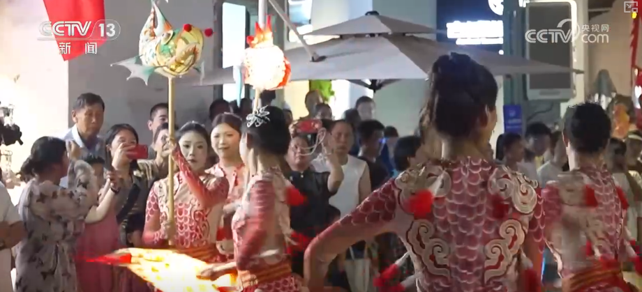夜幕降临,拥有600多年历史的非遗虾灯表演等节目轮番上演,传统建筑与现代光影交相辉映,为游客呈现了一场兼具传统底蕴与视觉震撼的文化盛宴。