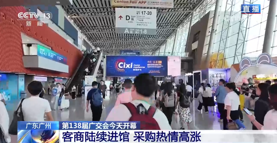 央视网消息:第138届广交会今天(10月15日)在广州开幕。本届广交会参展企业数量、展位数量均创下历史新高,超3.2万家企业携百万件新品奔赴这场外贸盛会,向世界集中展示中国制造的“向新”与“向智”的活力。开展第一天,现场情况如何?