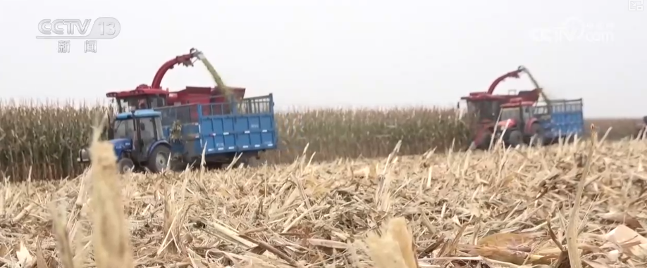 这里是吉林省梨树县孤家子镇团山子村的一家农民专业合作社。金秋十月,这里的7000亩玉米迎来集中采收,连绵成片的玉米地一片金黄,丰收在望。现场,两台新型玉米收割机正在田间作业,这台收割机和以往相比,可以实现茎穗兼收,秸秆可直接粉碎,一部分直接还田,一部分用于家畜饲料。