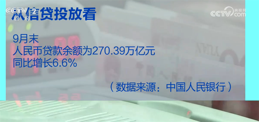 从信贷投放看,9月末,人民币贷款余额为270.39万亿元,同比增长6.6%。