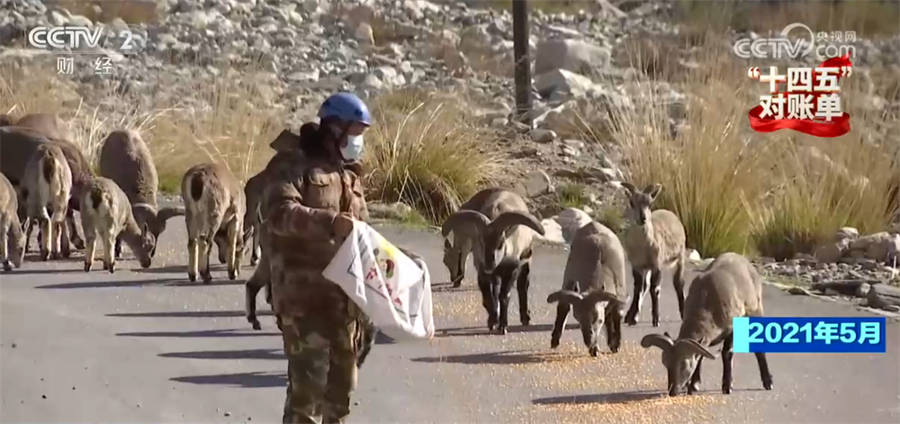 很明显,宁夏贺兰山国家森林公园生态科普员宁晋与这些岩羊关系不一般,过去四年,他常常喊羊下山开小灶,不过最近,他准备的玉米总是被剩下。