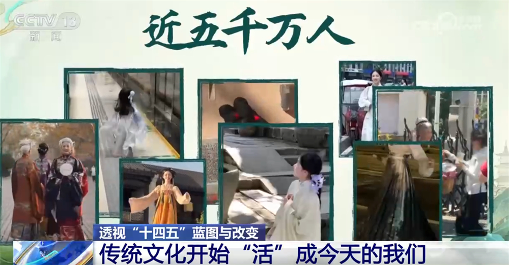 央视网消息:过去,我们在课本里背古诗、学历史;今天,我们身着汉服走上街头,在旅行打卡、短视频创作中重新感受传统。五千年的文化正在从书页走向街头,从展厅走进生活,成为我们日常的一部分。“十四五”的五年,让文化真正“活”在了当下,也“活”进了我们的生活。