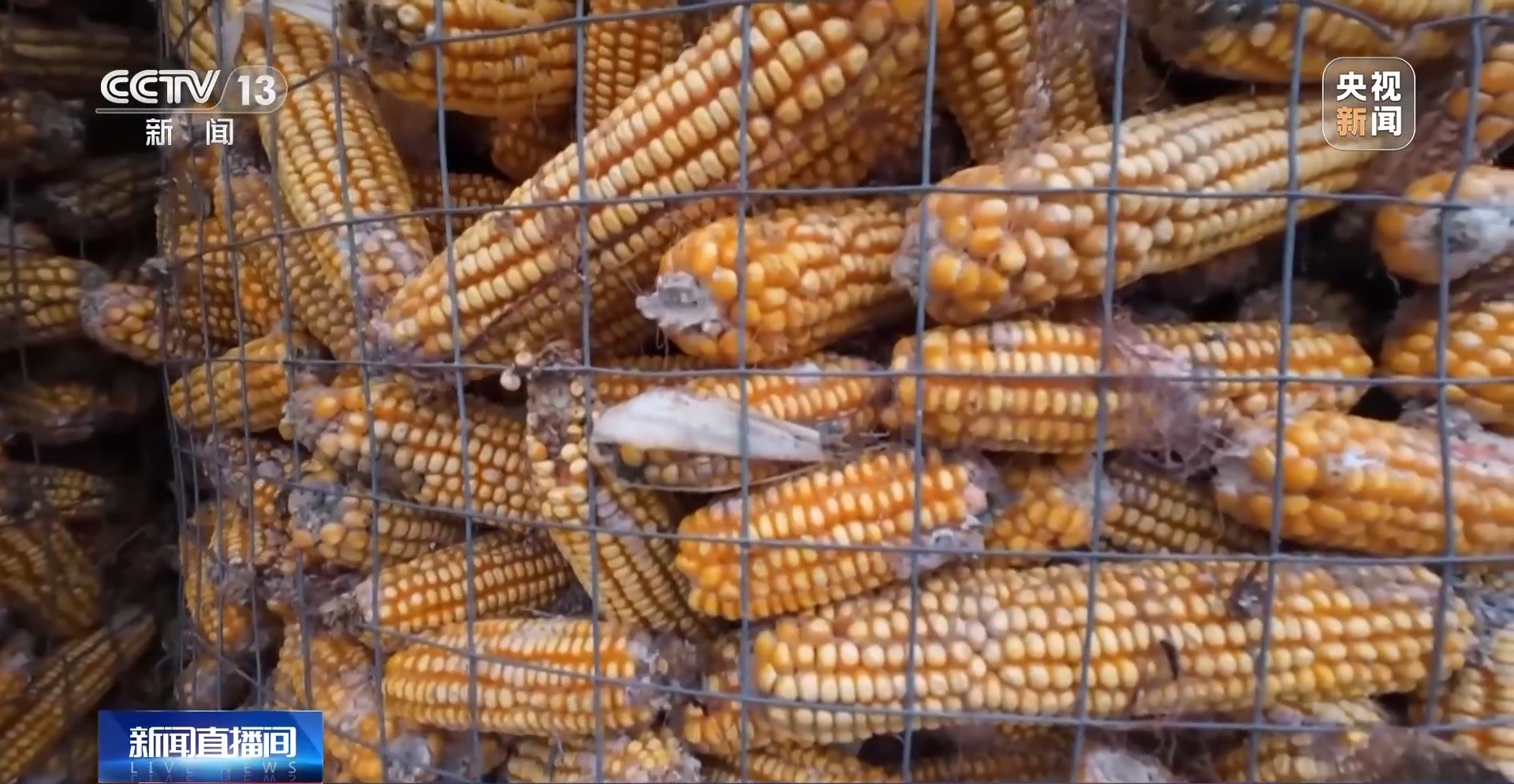 农民温玉仓今年种了6亩玉米,由于玉米成熟后遭遇连阴雨,部分玉米棒的顶部苞叶被水浸湿而发生了霉烂。为了把收回来的玉米保存好,村民们纷纷在自家门前扎起便于通风晾干的大铁笼子,每笼玉米有1000多斤。