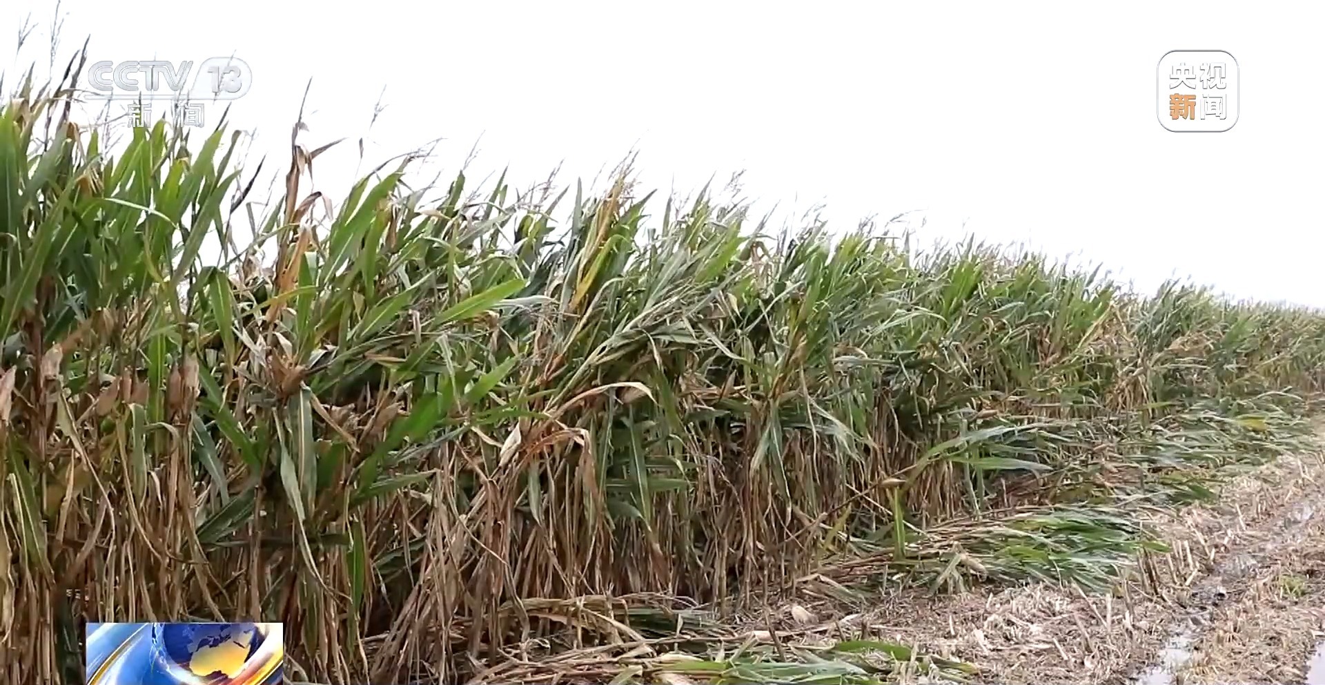 记者看到玉米地里挖开了一道沟,便于积水及时排出来。茎秆上的玉米棒已经都被农户收走了,剩下的茎秆要等天晴之后土壤干些了,被粉碎还田。