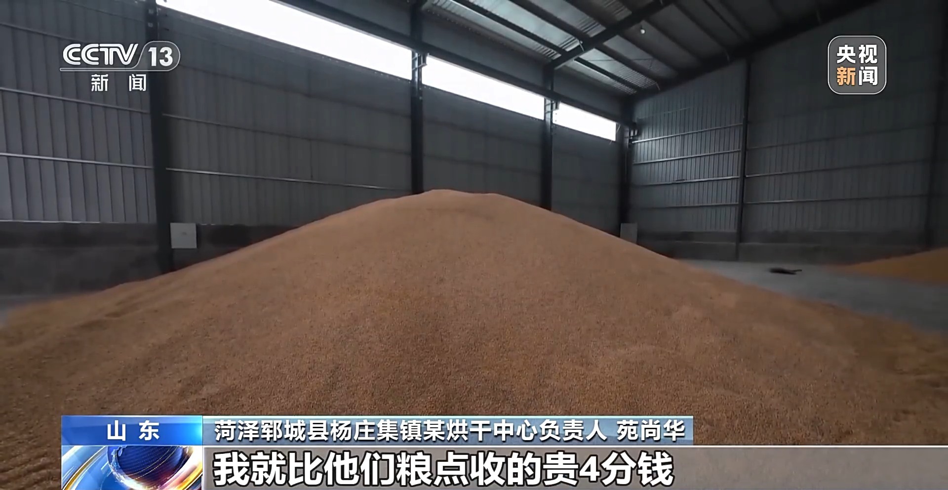 菏泽郓城县杨庄集镇某烘干中心负责人 苑尚华:镇上很重视这个事,不能给这个下面粮点收一样钱,我就比他们粮点收的贵4分钱。