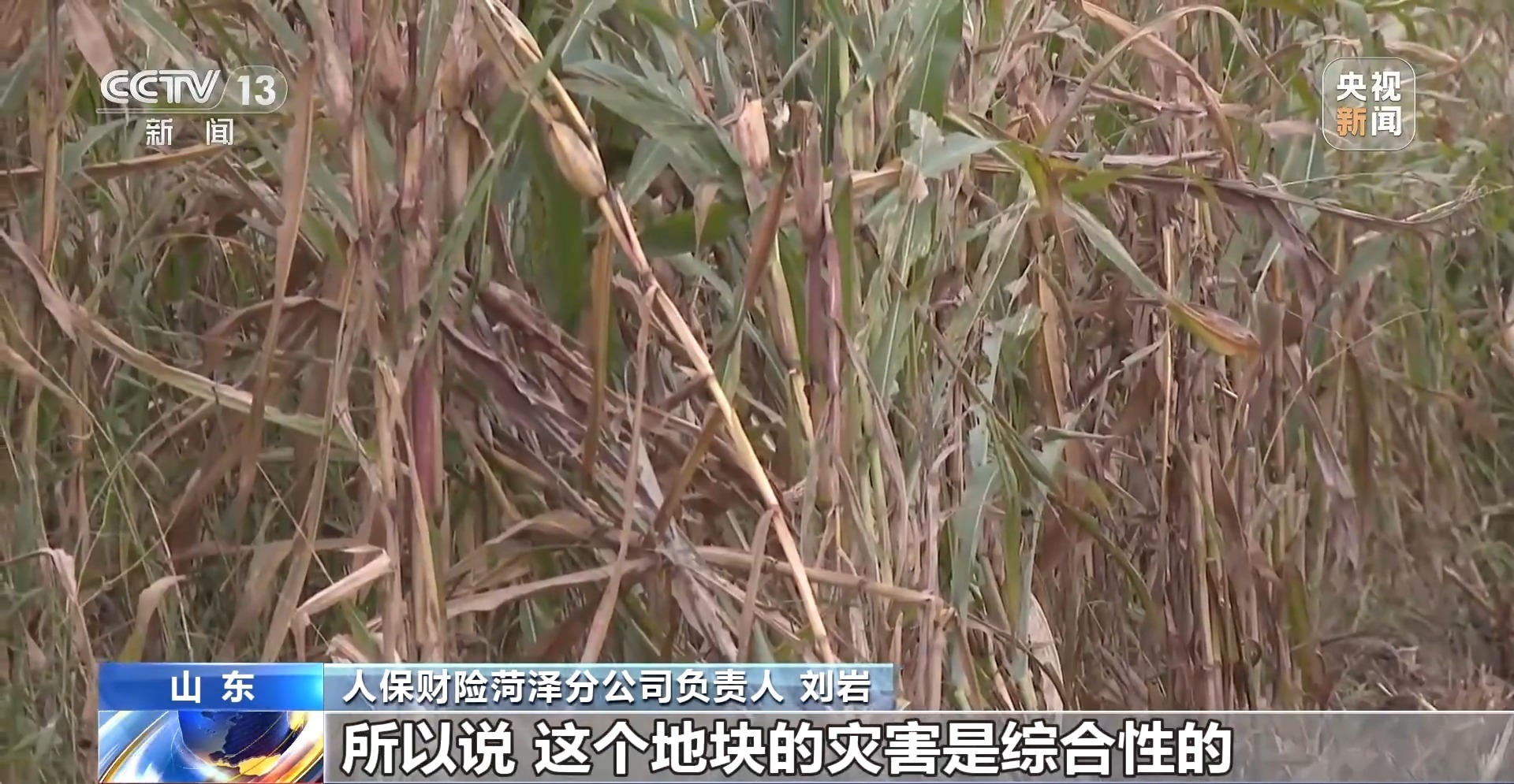 人保财险菏泽分公司负责人 刘岩:我们通过查勘,也发现存在一部分病虫害的特性,再加上近期有一些连阴雨的情况,也导致了地块有部分内涝,所以说这个地块的灾害是综合性的。