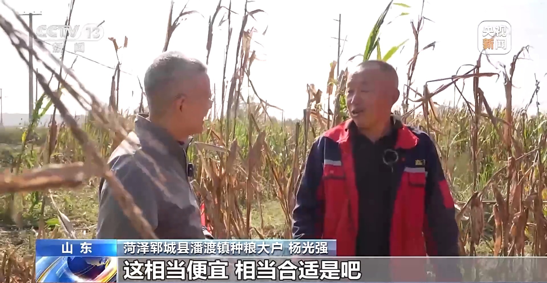菏泽郓城县潘渡镇种粮大户 杨光强:一亩地保费自己出八块八,这相当便宜、相当合适,是吧?