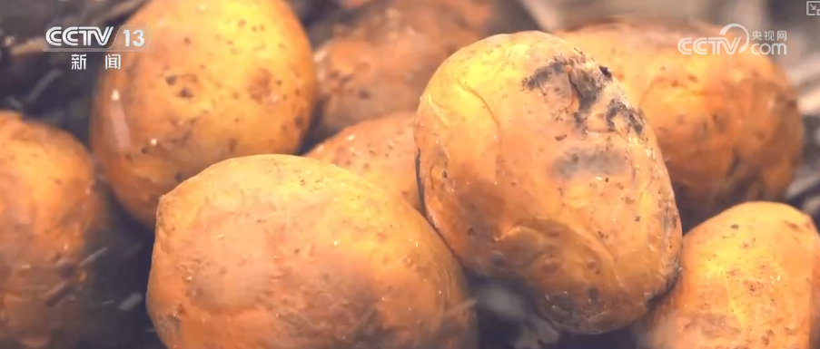 这就是刚才记者已经收获的土豆,五颜六色的,有红皮的、有黄皮的。土豆虽然小,但是外观非常完整。它们为什么会被农民遗落在田野里?