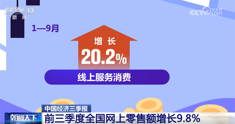 网络零售持续激发消费活力。数字产品、线上服务、即时电商成为亮点,据商务大数据监测,1—9月,手机、电脑等数字产品网零额增长8.3%,线上服务消费增长20.2%,即时电商销售额增长24.3%。