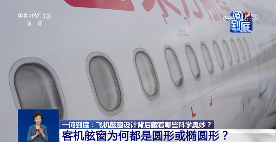 刘建辉:圆形的话它压力是分散的,设计上是安全的,最大程度上缓解蒙皮上的承载压力。另外一个圆形对旅客来说也是比较好的,有一个弧线视角,比较大,所以说后期的飞机全部改成圆形了。