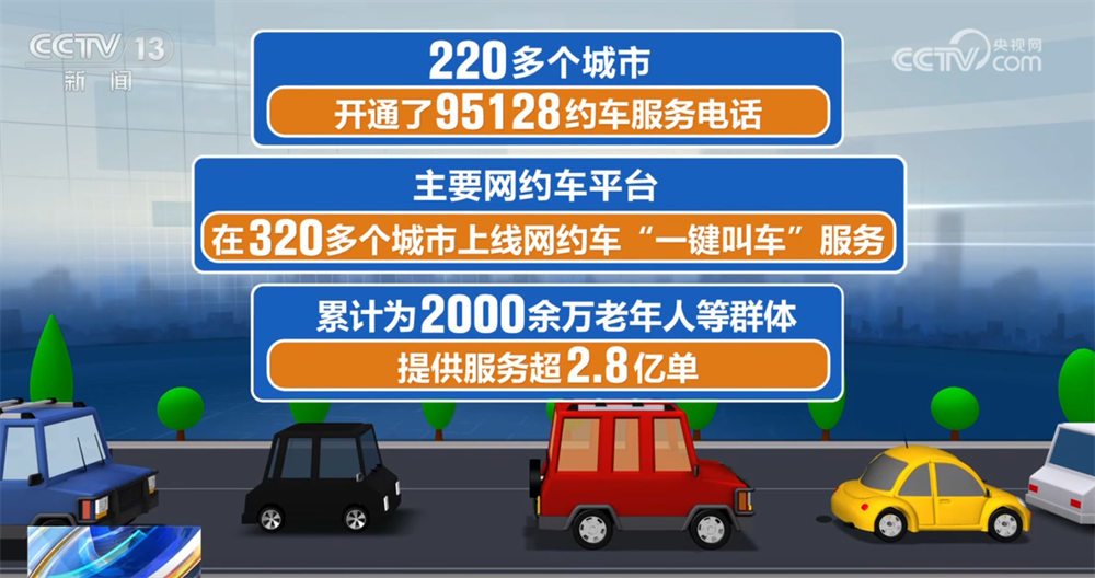 围绕老年人出行需求,全国已打造超4700条敬老爱老公交线路。针对部分老年人手机使用不熟练等问题,220多个城市开通了95128约车服务电话,主要网约车平台在320多个城市上线网约车“一键叫车”服务,累计为2000余万老年人等群体提供服务超2.8亿单。