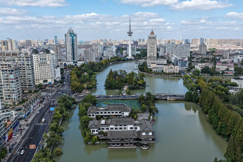 这是10月24日拍摄的南通城区(无人机照片)。新华社记者 李博 摄