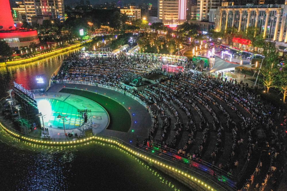 6月28日,人们在江苏省泰州市海陵区老街景区“律动苏超音你泰美”音乐节上观看表演(无人机照片)。新华社发(汤德宏 摄)