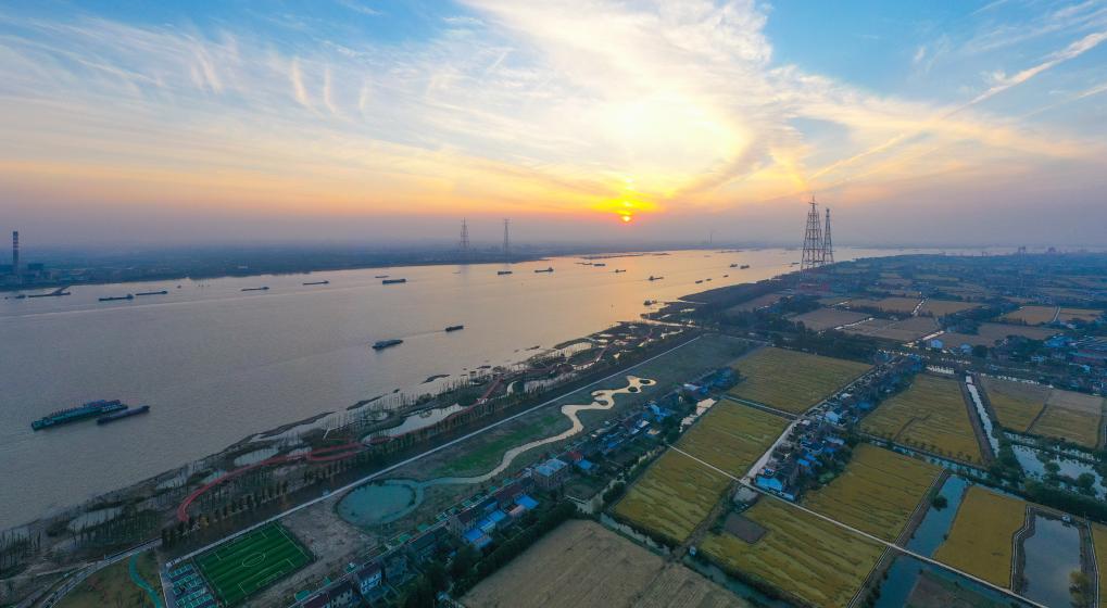 长江江苏泰州段景色(无人机照片,2021年11月3日摄)。新华社记者 季春鹏 摄