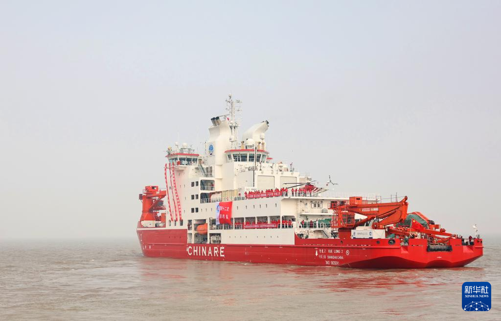“‘雪龙2’号是我国自主建造的第一艘极地科学考察破冰船,于2019年7月交付使用。”“雪龙2”号船长张旭德介绍,它采用双向破冰技术,机动性更好,能在1.5米厚冰加0.2米厚雪的环境中连续破冰。