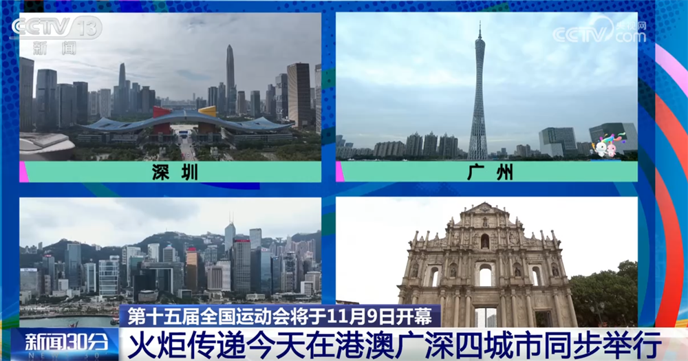 央视网消息:第十五届全国运动会将于11月9日在广州开幕。11月2日上午,十五运会火炬传递在香港、澳门、广州、深圳4个城市同步举行。