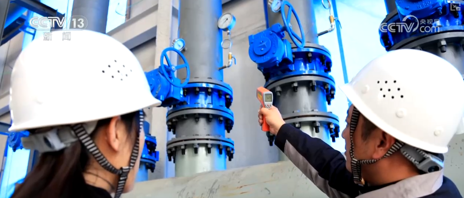 地热水从地下1500米抽上来,要先在这个地热能源站提取热量,再用这些热量加热自来水,然后把加热好的水通过管道送到居民家,实现供暖。工作人员现在正在监测的正是往百姓家送水的出水口温度,这个温度高低直接决定了居民家里暖不暖。