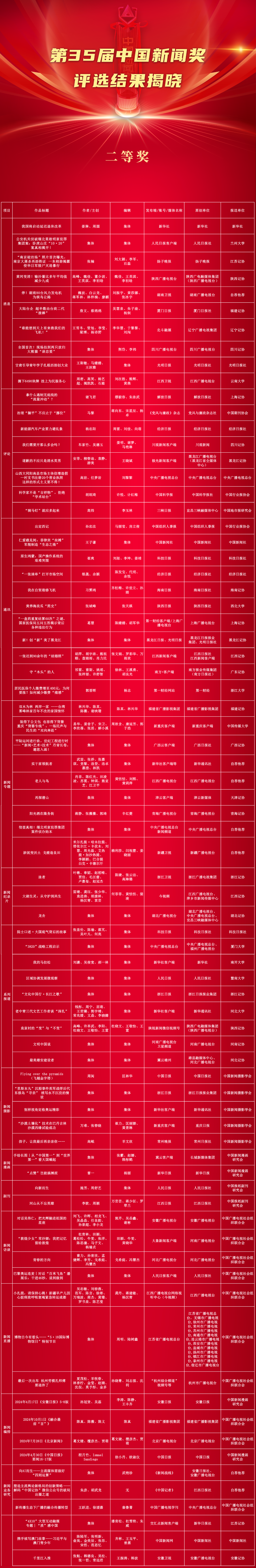 由中华全国新闻工作者协会主办的第35届中国新闻奖评选结果于11月5日揭晓。